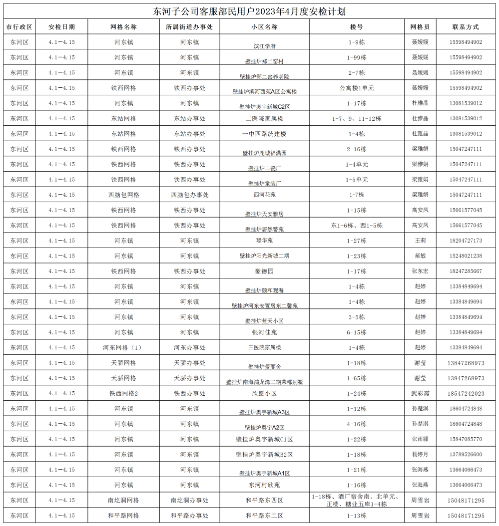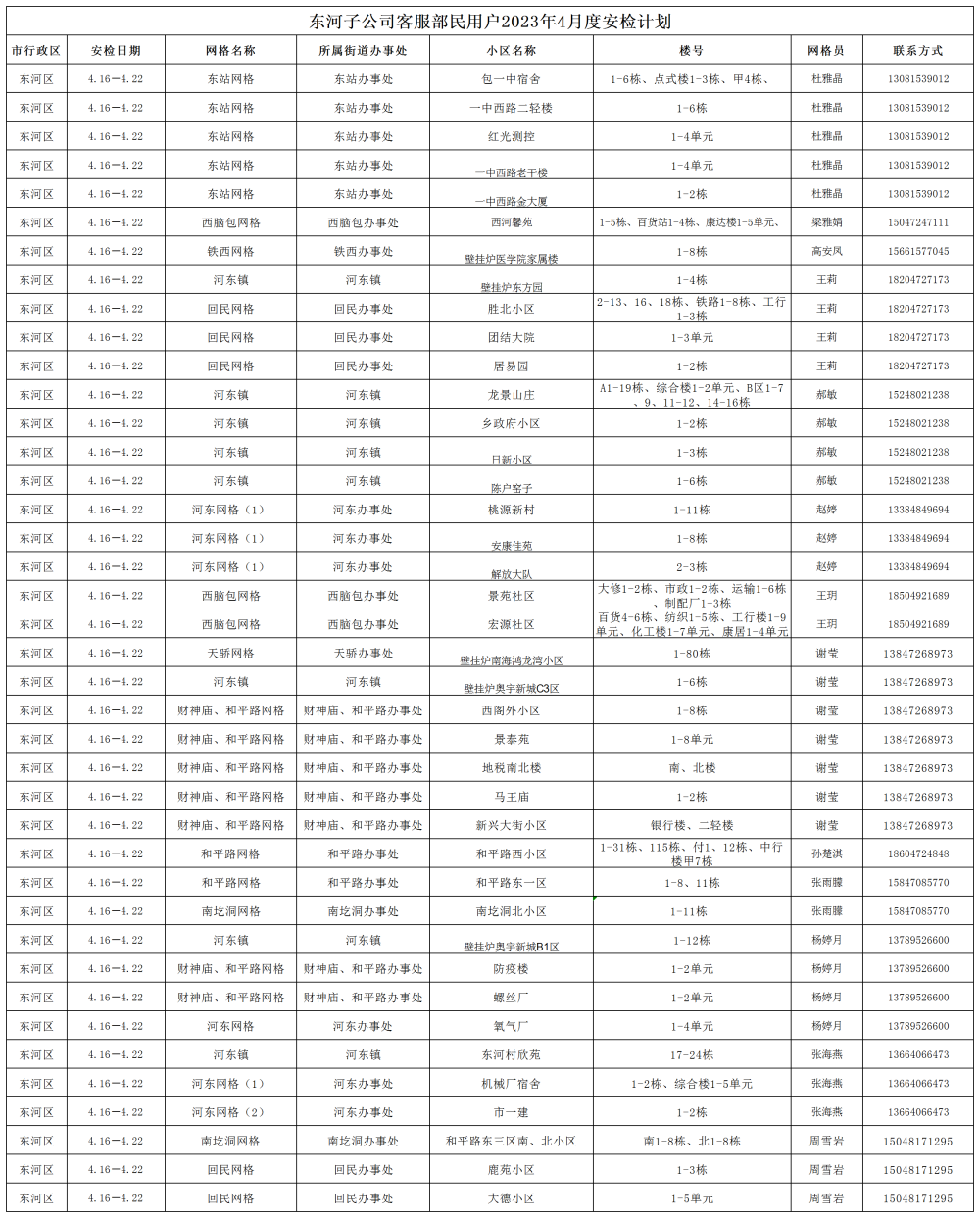 2023年4月份,365账号限制投注怎么办_365bet登录_必发365娱乐在线官网市燃气有限公司和内蒙古中浩燃气有限公司将以网格为单位,继续为广大用户提供天然气入户安全检查及抄收工作,为便于大家提前做好准备,现将2023年4月1日-2023年4月30日期间的安检抄收计划为广大燃气用户进行公示。