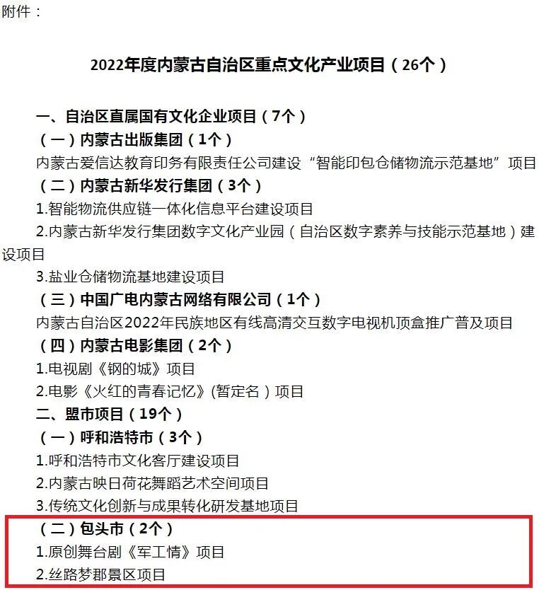 365账号限制投注怎么办_365bet登录_必发365娱乐在线官网 2022-05-24 11:48 编辑:郝晨莺 0 好消息! 我市原创舞台剧《军工情》文化产业项目 丝路梦郡景区文化产业项目 入选 2022年度自治区重点文化产业项目 来源:内蒙古文化产业网