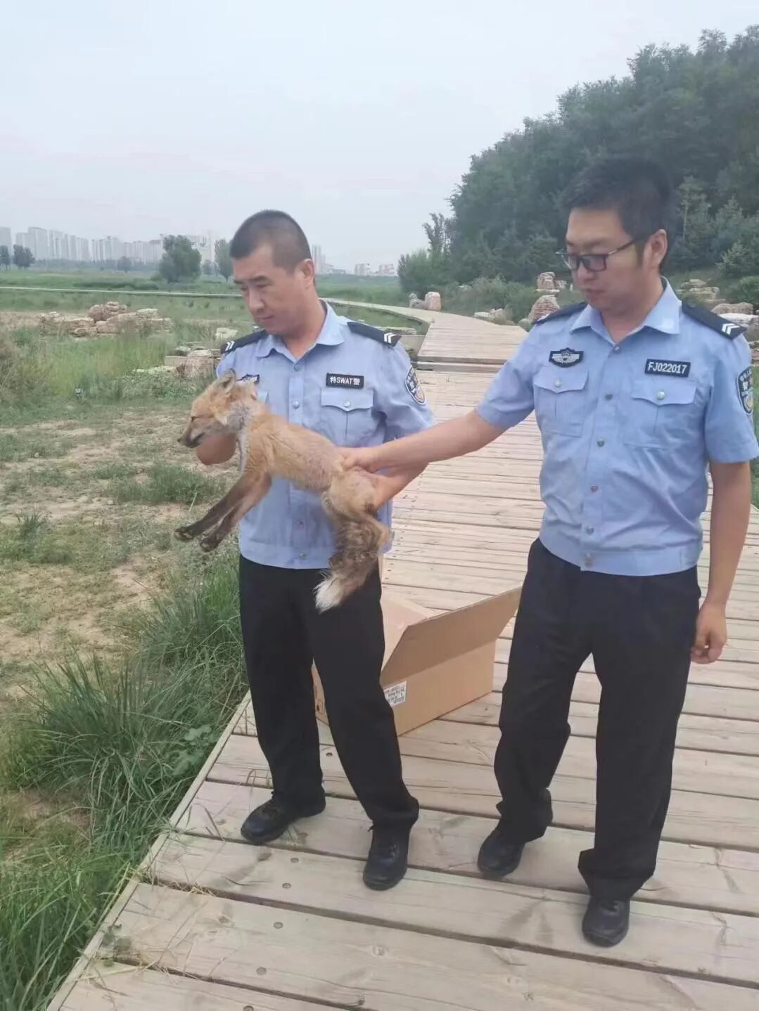 为了防止狐狸发生意外或者伤害周围群众,现场巡控民警利用工具将狐狸捕获。环食药犯罪侦查大队查询得知,这只狐狸是幼年赤狐,属于国家二级保护动物,主要以捕食野鼠野兔为生。考虑到赤狐年龄尚小,还无野外自主生存能力,民警与赛汗塔拉城中草原工作人员取得联系后,将赤狐暂养在赛汗塔拉野生动物保护区,由人工喂养,待成年可以独立觅食后再进行放生。